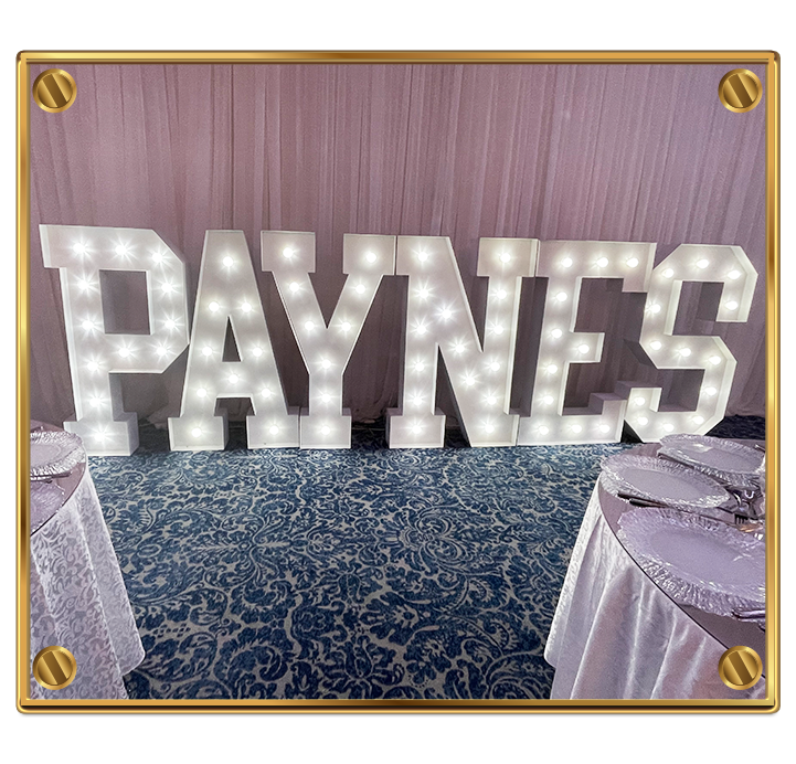 Highlight certain element about your special occasion with one of our luxurious marquee signs.